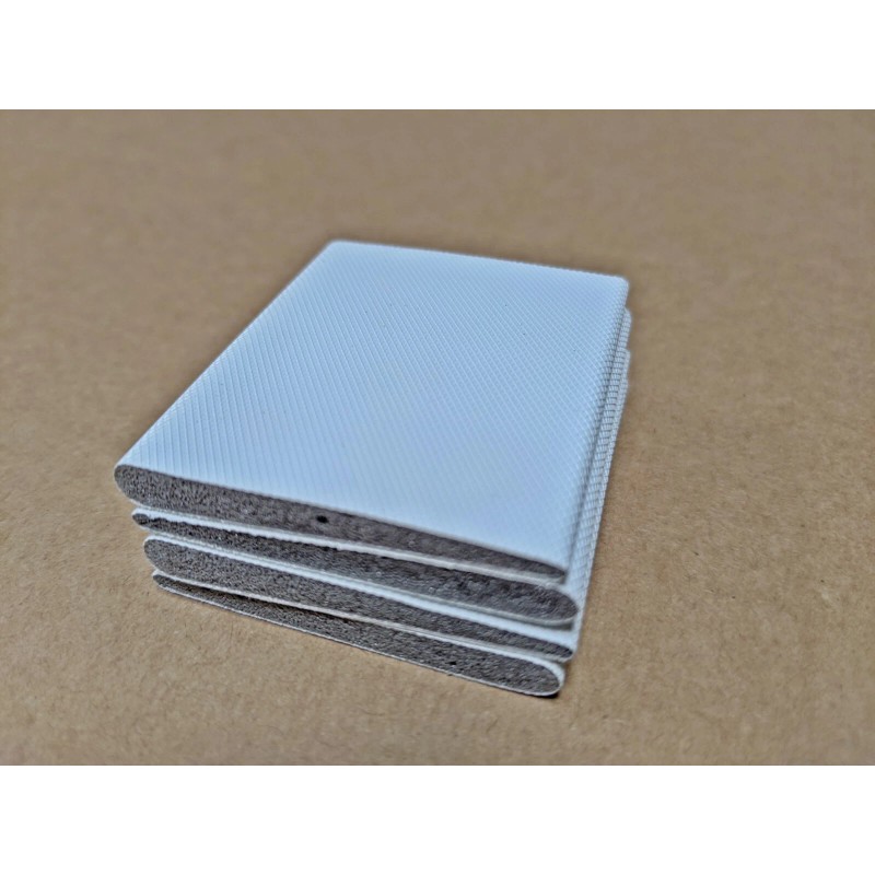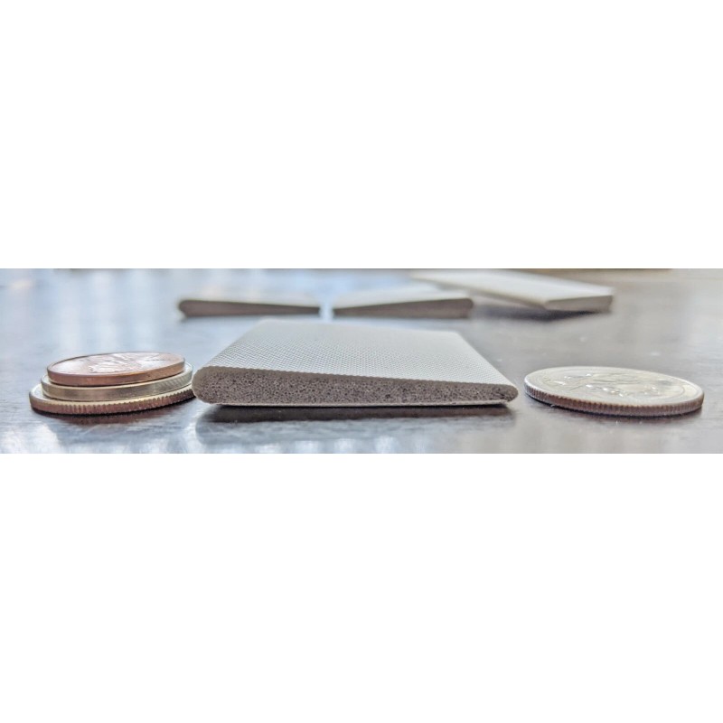 These are little wedge-shaped pieces of foam weatherstrip / weatherstripping with peel-off adhesive backs.