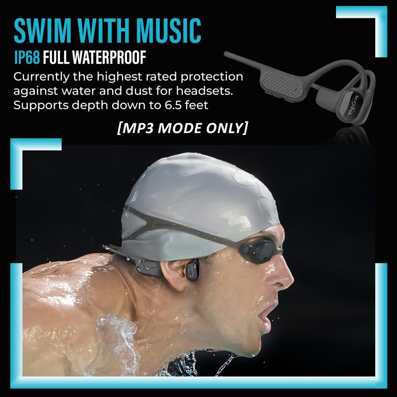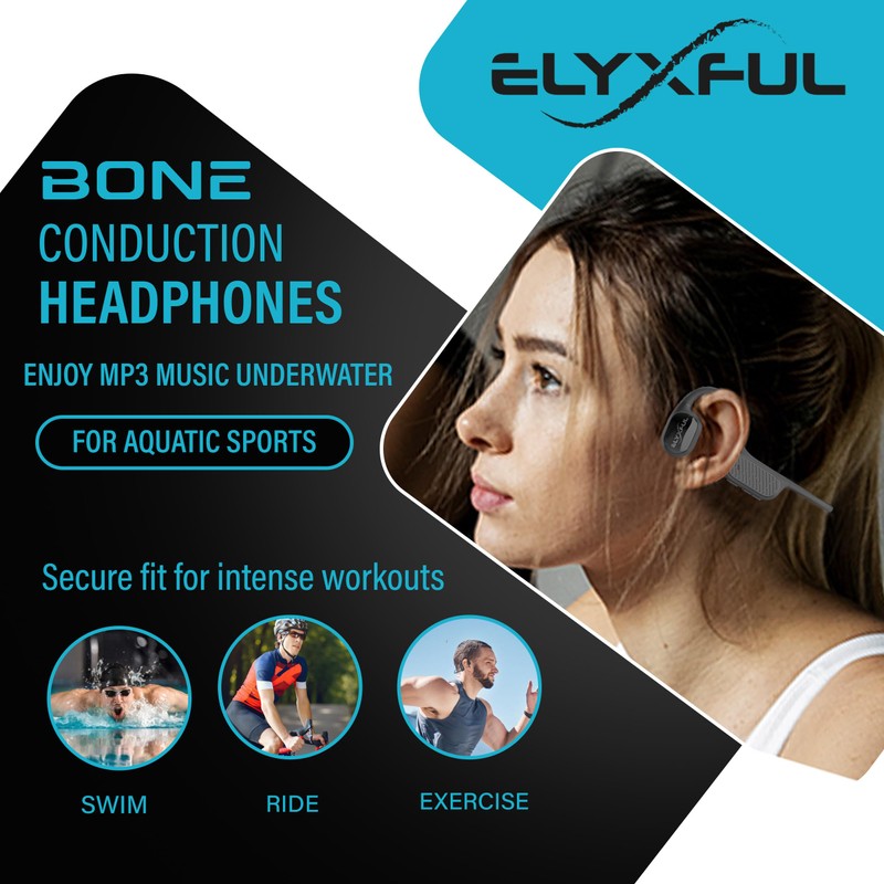 ELYXFUL Bone Conduction Swimming Headphones with Bluetooth & 64GB MP3 Player, Shuffle & Repeat, IP68 Waterproof, Secure Fit for Workouts, Running, Cycling and Swimming, Microphone for Hands-free Calls