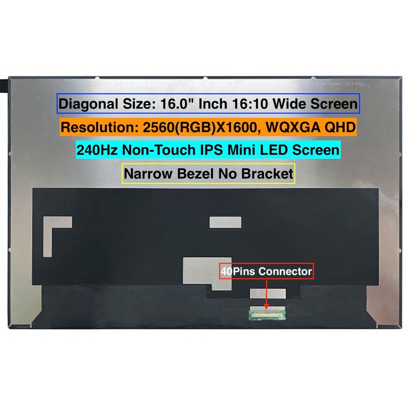 - Display Technology : 16.0" WQXGA 2560*1600 QHD 16:10 240Hz Non-Touch Screen 40Pins Connector