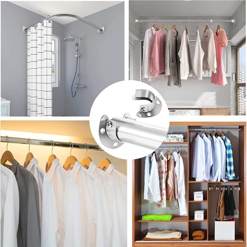 - Multi-functional Flange Socket: U-shaped flange sockets are firmly attached to walls and wooden surfaces, and are a metal fixture to secure your clothes rod or curtain rod poles. Suitable for closets, bathrooms, kitchens, living rooms, laundry, verandas and other places. Easy to hang towels, clothes, curtains, ties, etc