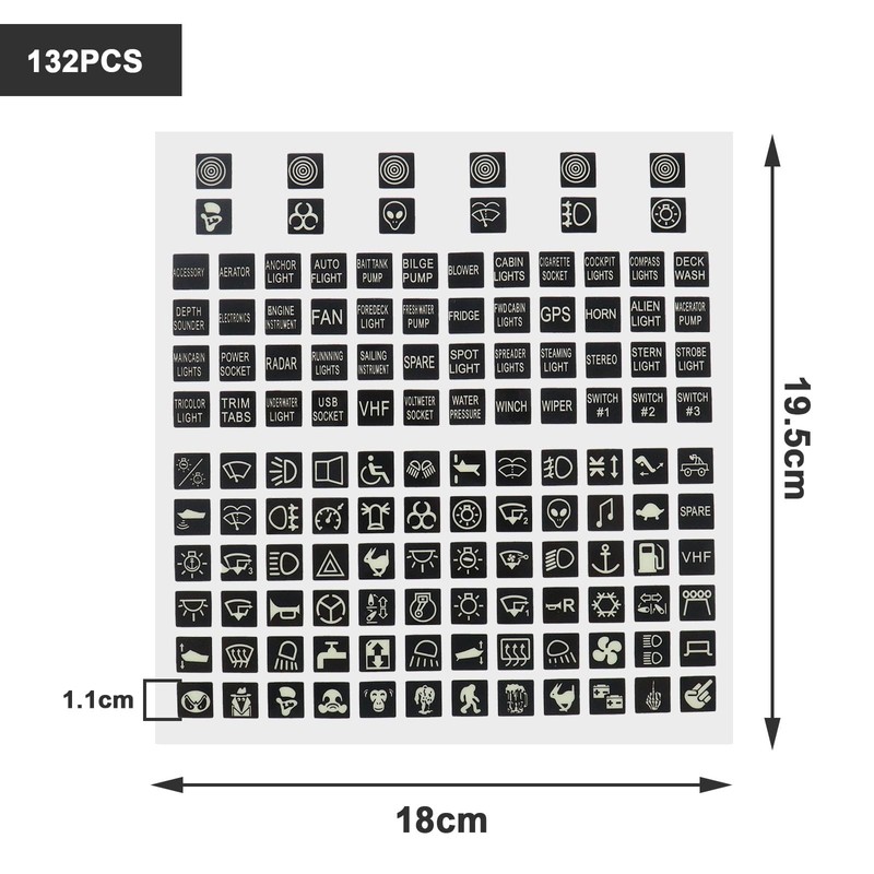eMagTech 132Pcs Glow-in-The-Dark Stickers Heightlight Switch Stickers Luminous Stickers for Car Night Safety Car Headlight Control GPS Boat Trailer Centre Console Switch