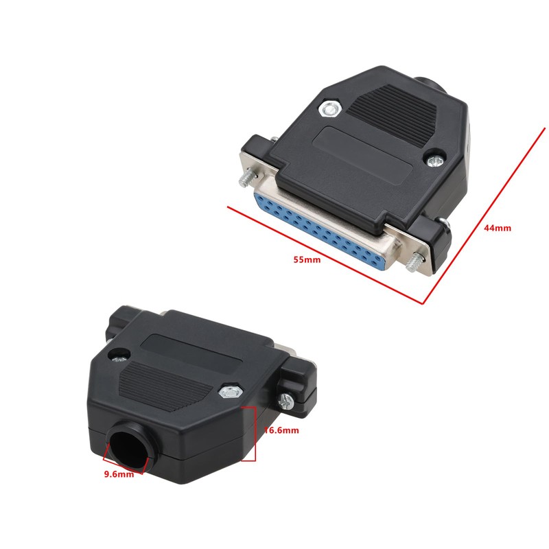-DB25 male and female crimp connector and black plastic cover with screws, accessories and pin kit.