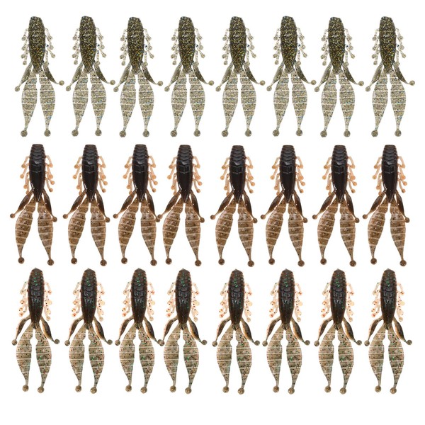 - The package contains 24 crawfish soft baits in three colors. Simply hang them on the hook and they easily attract the attention of the fish in the water. The shape of the soft bait determines that the swimming posture of the bait in the water is more lush than that of the hard bait. The attraction of rubber fish is more clear. Ideal for all fishing conditions that require improved action.