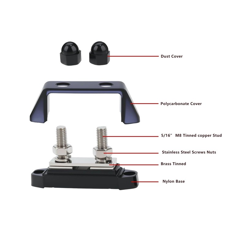 - Safety and Protection: Each power distribution block comes with a protective cover and two nuts to shield the exposed surface. This minimizes the risk of accidental contact, prevents short circuits, and enhances circuit safety during operation.
