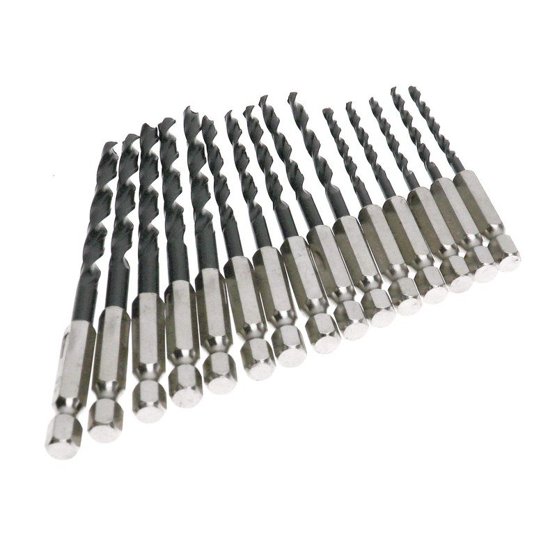 - 15-piece hexagonal shank HSS drill