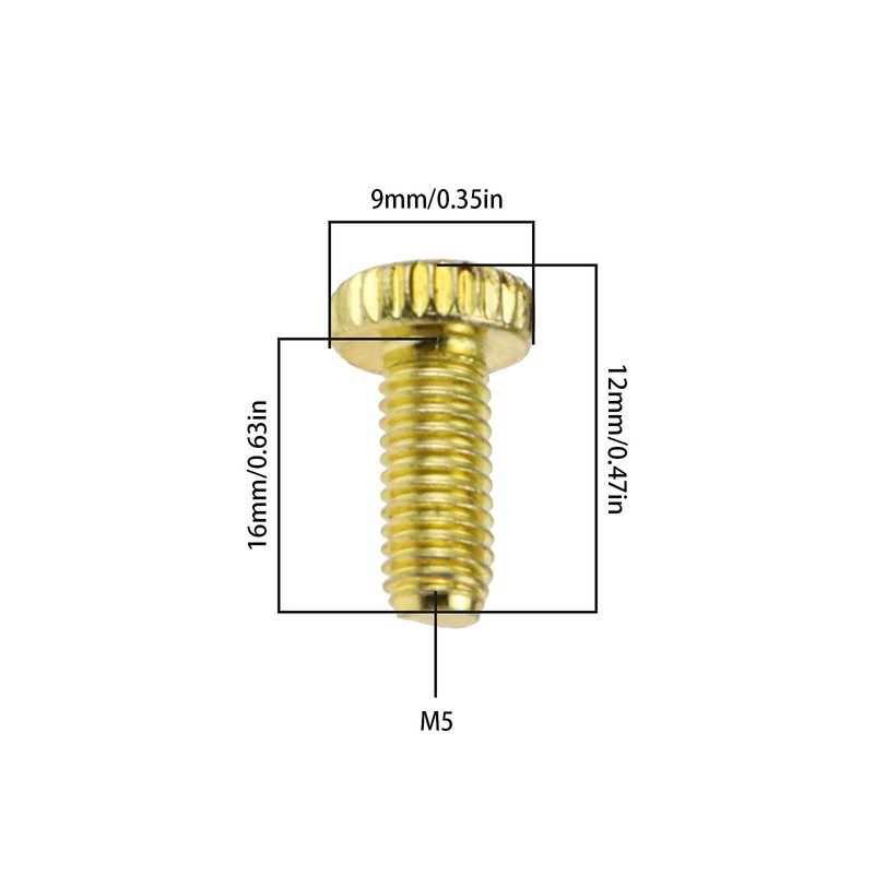 - Dimensions: thread diameter approx. 5 mm. Total length: approx. 16 mm, head diameter 9 mm.