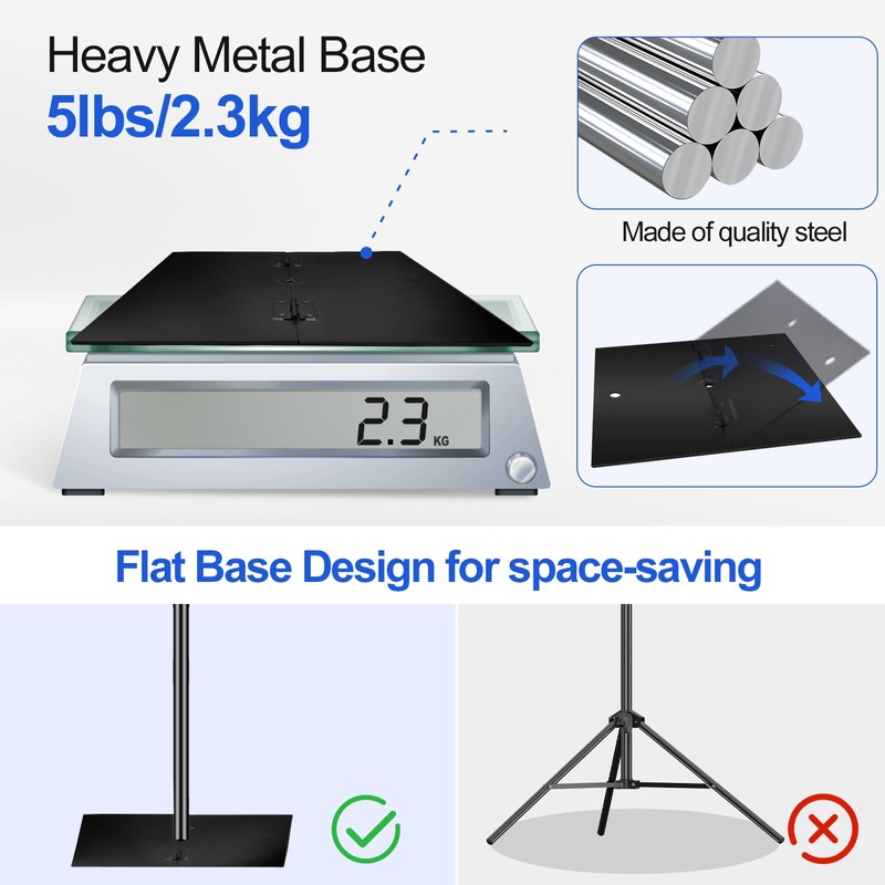 • 【Heavy Metal Base】 The base is made of good quality iron.And the large contact area as well as the weight ensure the stable support. Meanwhile, the flat base can avoid the exposure of stand.