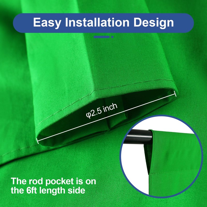 - Chroma Key Green Screen: 6ft wide 9ft tall green background surface provides pure green, which can help you better use in live gaming, Zoom and streaming
