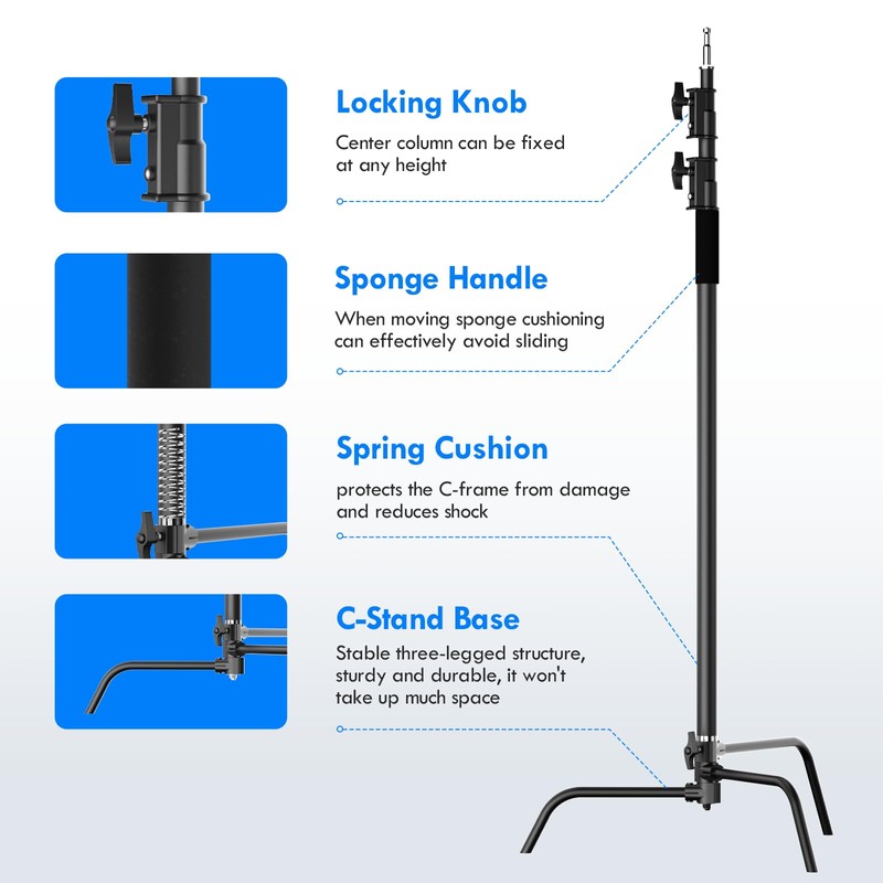 • 【Heavy Duty C Stand】This photography C-stand made of Stainless Steel, the C-stand with refined design serves long-lasting durability for supporting heavy-duty photographic gears