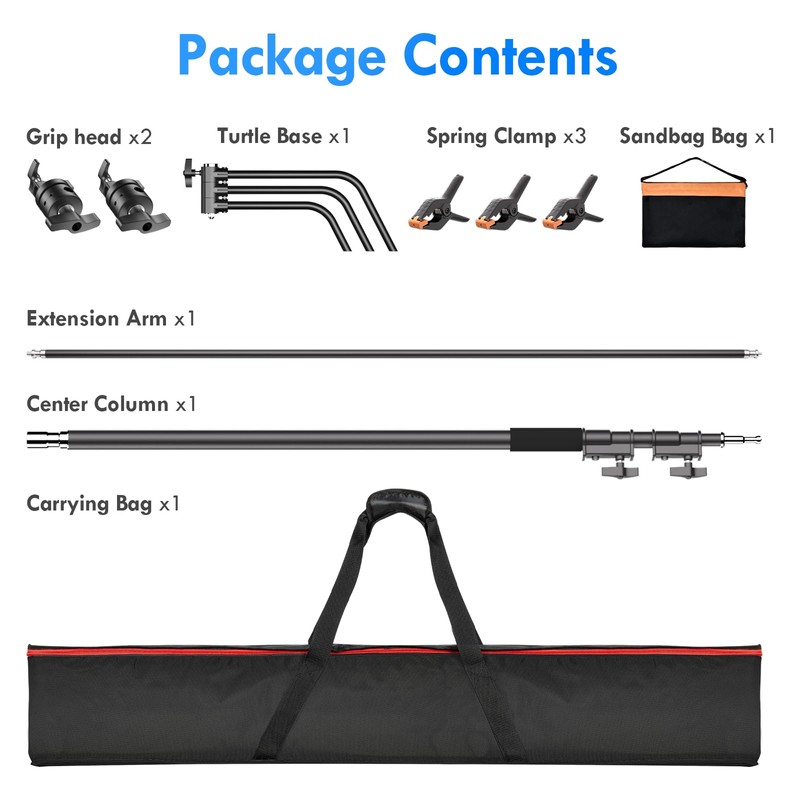 • 【Extension Arm】Holding arm length is 4.2 ft/128 cm. Equipped with 1/4” and 3/8” screws at both ends, the extension arm can mount most photographic accessories with ease. Grip heads enable you to keep the arm firmly in place and set different angles effortlessly