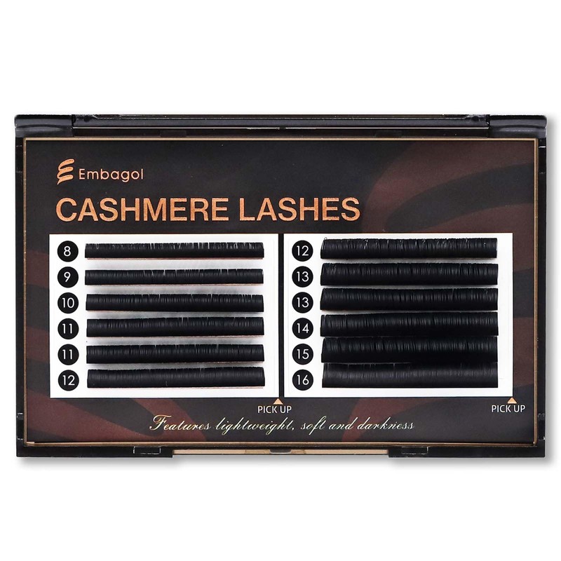 Embagol Classic Volume Lash Extensions Cashmere Lash Trays Premium Silk Lashes Soft Matte Black Professional Supplies for Lash Tech(0.10 CC 8-16mm)