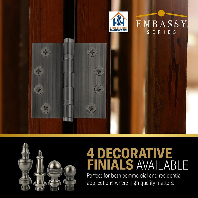 Embassy Door Hinge Solid Brass – 4.5 x 4.5 Inch, Heavy Duty, Pewter, Ball Bearings, Rust Resistant Stainless Steel Pin, Architectural Designer Grade, Home Improvement, 3 Pack