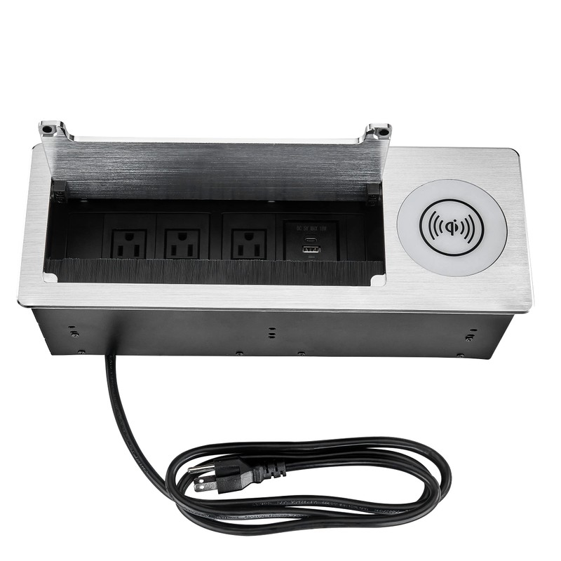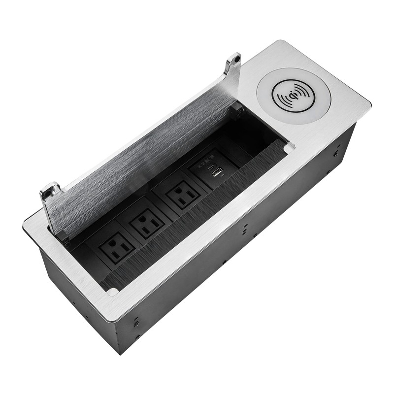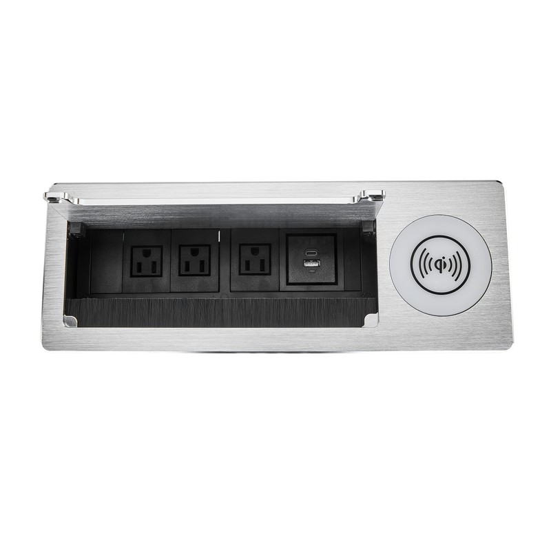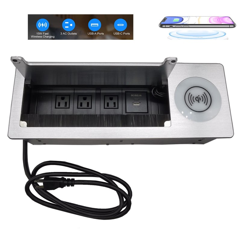 Embedded Desktop outlets, Conference Table Outlet Wireless Charger Fast Charging 15W connectivity Box with Power outlets USB C Charger 18W 4.9ft Power Cord for Office, Home (Brushed Silver)