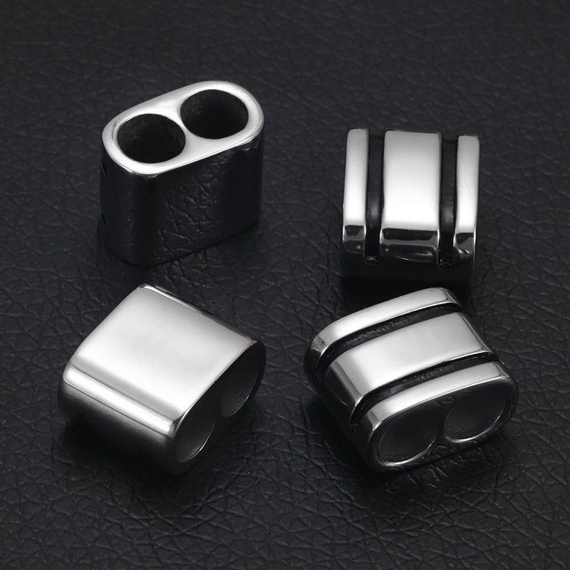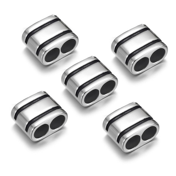 EMBLAASK 5pcs 6mm Stainless Steel 2 Hole Spacer Beads Multi-strand Link Connector Slider Bead for Leather Cord Bracelets Jewelry Making (Style 3)