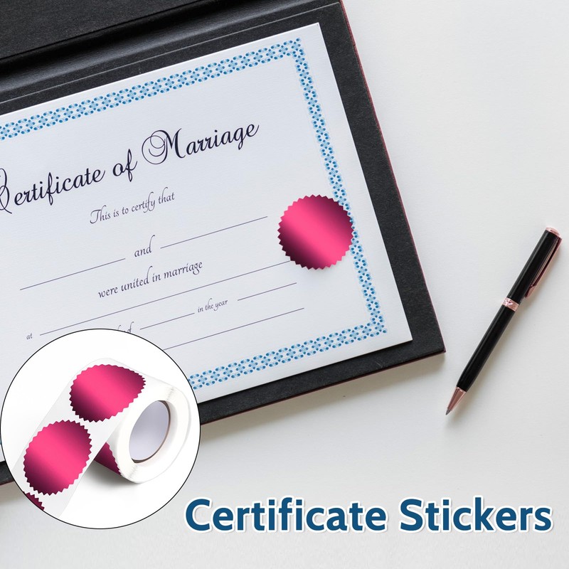 - EASY TO APPLY - These rose red embossing stickers feature a strong adhesive back that makes the blank stickers easy to peel and stick from the roll. The pink seal stickers for certificate can be applied to paper, glass, and any clean and smooth surface.