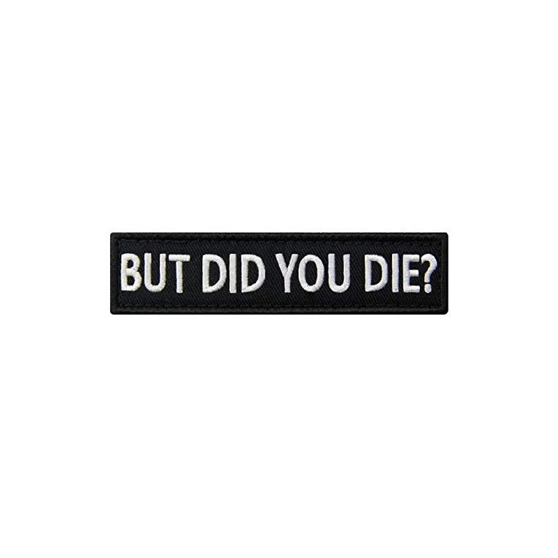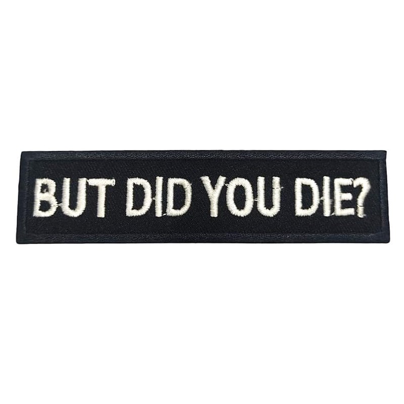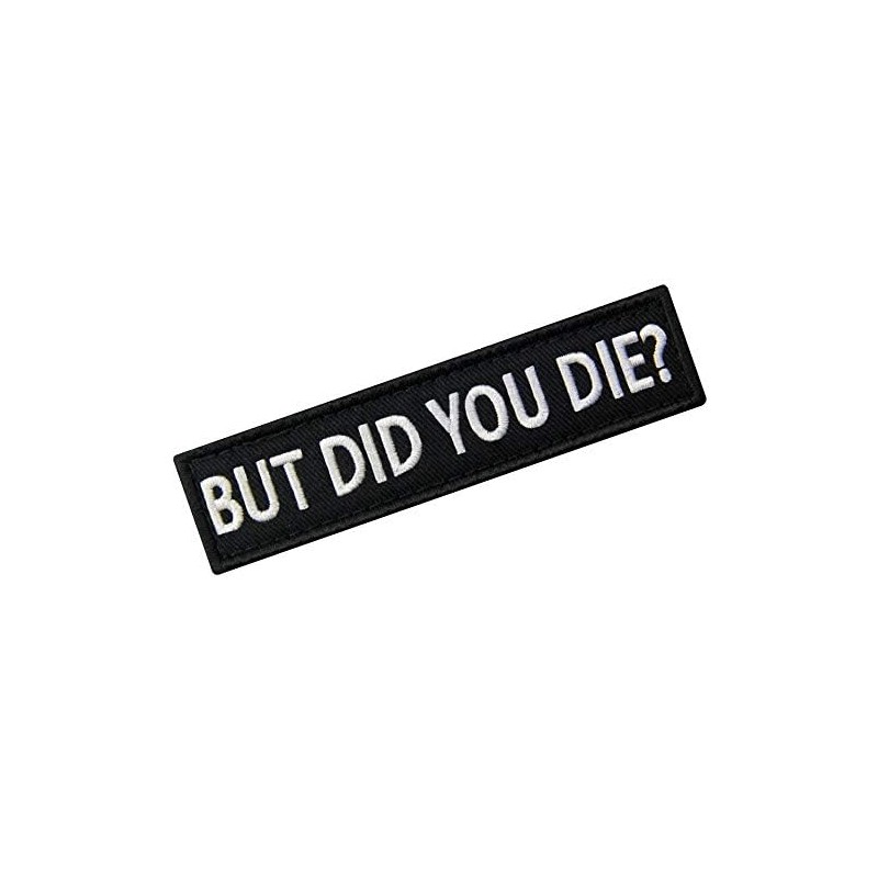 - DESIGN: High-quality embroidered patch featuring bold white text on black background with a professional finish