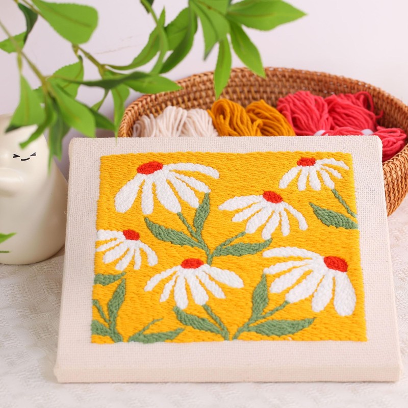- Punch Needle Kits: 1pcs 9.8 inch*9.8 inch Wooden frame, 1 sets color yarn ,1pcs punch needle,1pcs scissor, 1 pcs instructions and other embroidery tools