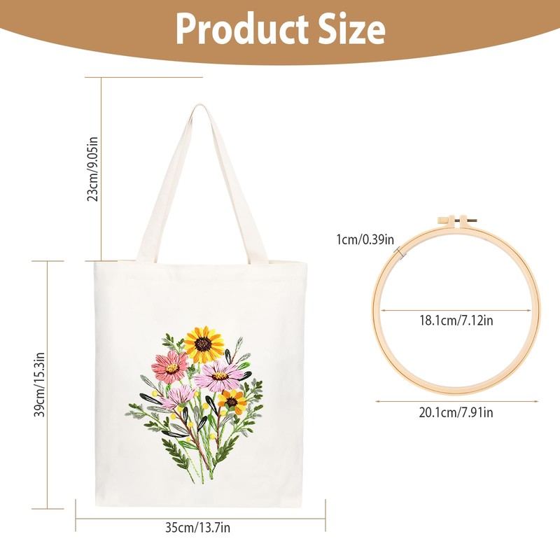 - Embroidery set bag: you will receive 1 canvas bag with template, sufficient yarn, 3 embroidery needles, 1 embroidery frame, 1 thread remover, 1 thimble, 1 threader and detailed instructions (English language not guaranteed). With this complete canvas bag embroidery set, you can make a unique canvas bag. And you do not need to buy additional tools!