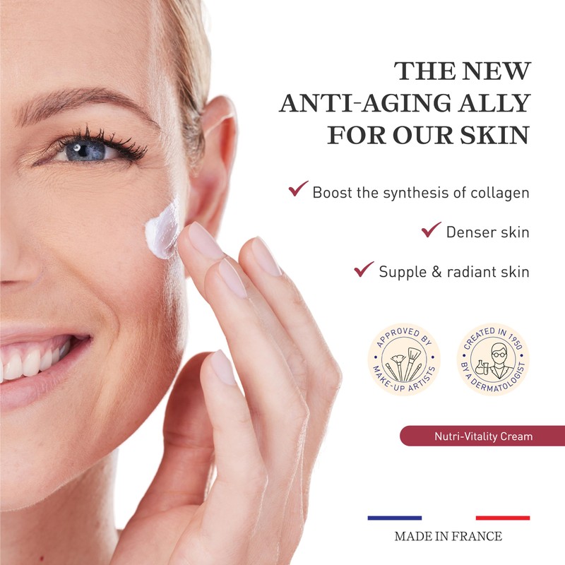 - Nutri-Vitality Cream, skincare specifically designed for mature skin. It acts on all 10 signs of aging, offering a complete solution for those looking for an global anti-aging treatment. Made with 97% ingredients of natural origin, this anti-aging cream is unique thanks to its formula enriched with polyphenol-rich red maple extract, a collagen booster, as well as macadamia oil and ceramide complex.