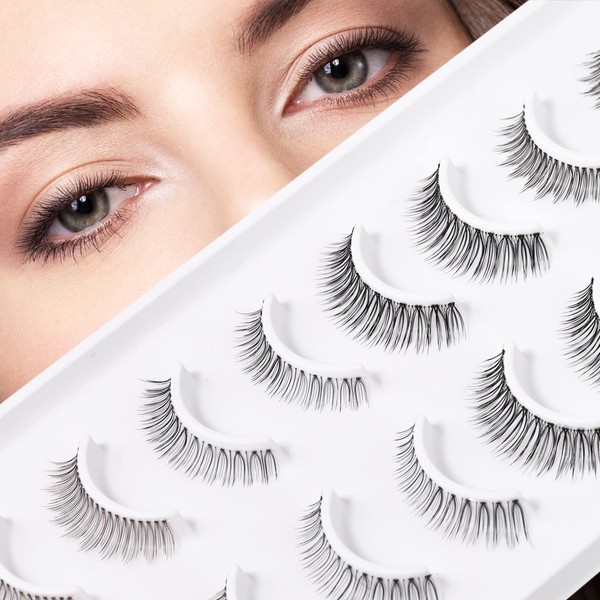 EMEDA 10 Pairs of False Eyelashes, 5 Styles Mixed, Hybrid Artificial Eyelashes Set, Natural Eyelashes, Transparent Band, Short and Soft Stripes, Artificial Eyelashes, Natural Eyelashes (Mix-M)