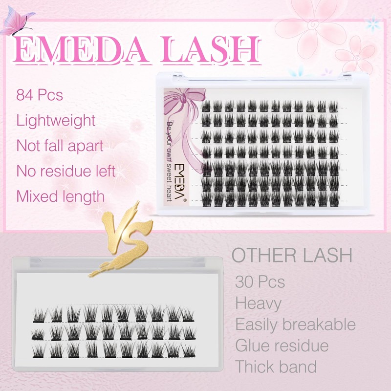 EMEDA Eyelash Clusters, 10 mm, DIY Individual Eyelashes, Eyelash Extensions, Thin and Soft, Natural-Looking Eyelashes, Eyelash Bands (D02-10 mm)