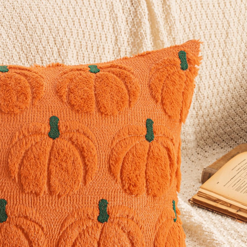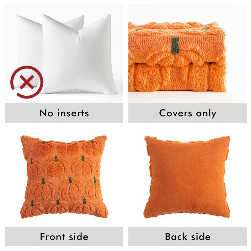 • Pumpkin Design: Featuring a beautifully stitched stem pumpkin motif, these pillow covers bring a sophisticated autumnal charm to your living space. Ideal for adding a festive yet elegant farmhouse vibe to any room