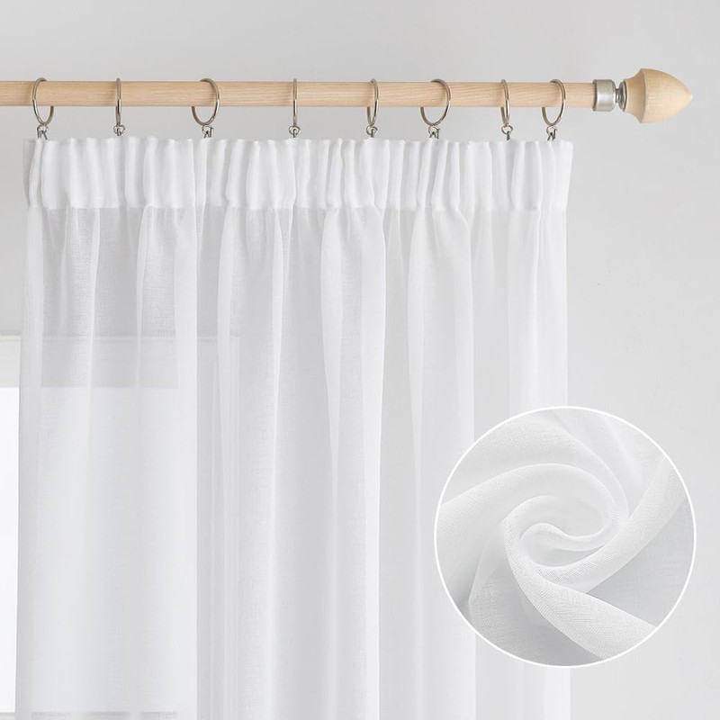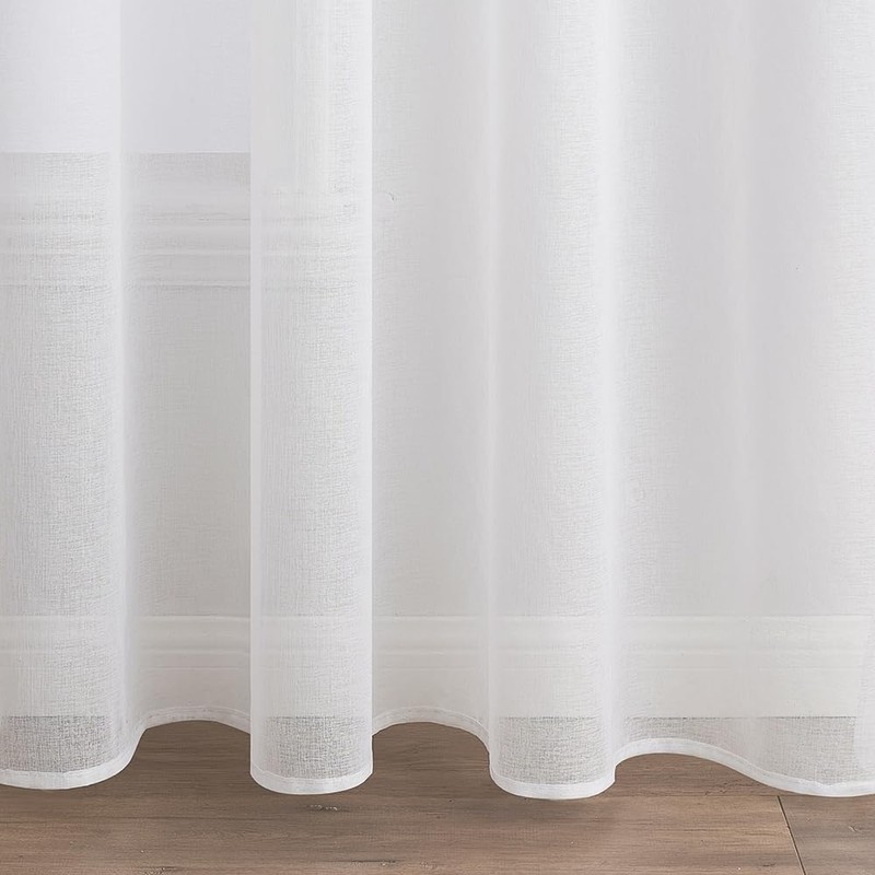 EMEMA Set of 2 Sheer Voile Curtains with Ruffle Tape, Transparent Voile Curtain, Polyester, Transparent, Living Room, Airy Decorative Curtain for Bedroom, 140 x 245 cm (W x H), White