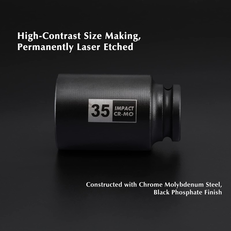• Sockets are laser-etched with high contrast and specific size marking for identification. It helps you select the size easier.