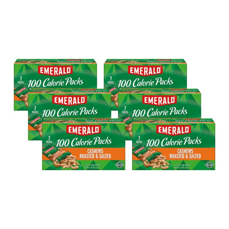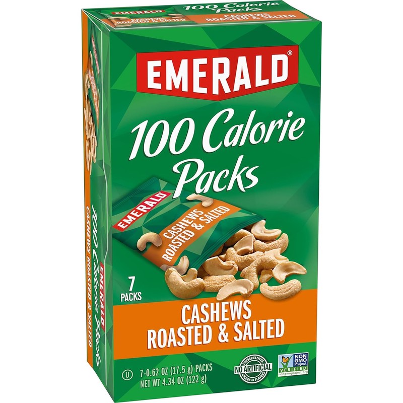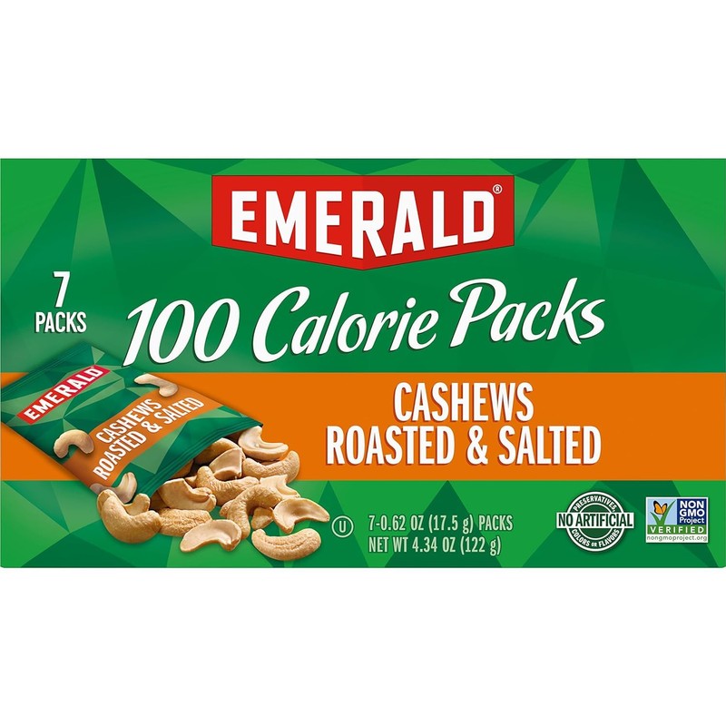 - 100-CALORIE PACKS: Emerald's Roasted and Salted Cashews 100-Calorie Packs are perfectly portioned and individually wrapped.