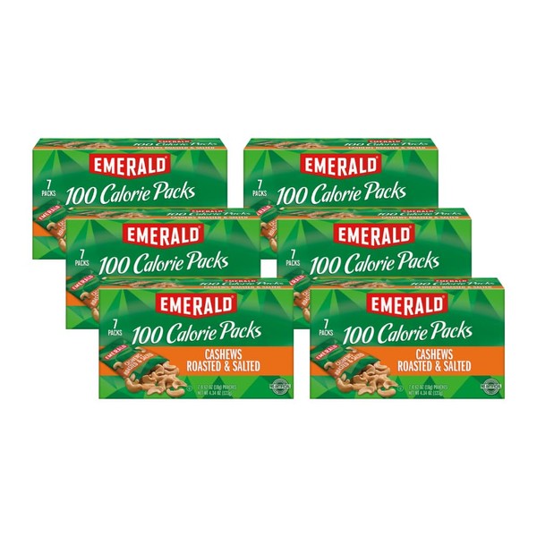 Emerald Nuts, Cashews Roasted & Salted, 100 Calorie Packs, 7 Ct, 4.34 Oz (Pack of 6)