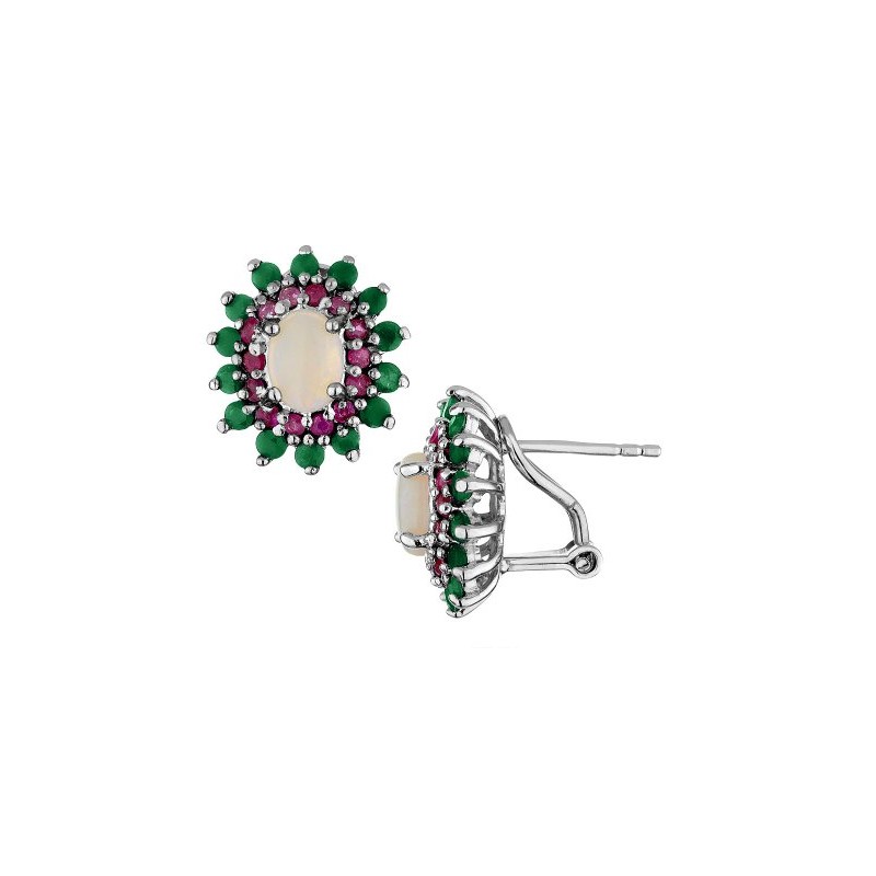 Emerald, Ruby and Created Opal Earrings 2.45 Carats (ctw) in Sterling Silver