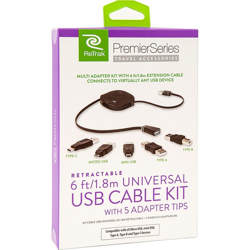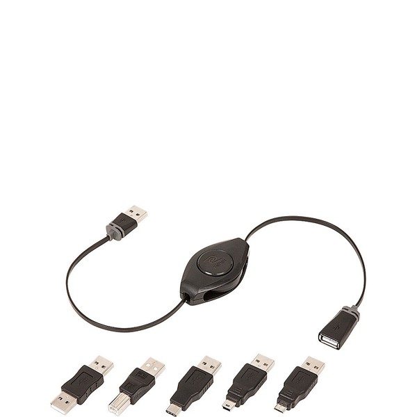 Emerge Tech ReTrak ETPRU6M Universal USB Extension Retractable Cord, Black, 6 feet