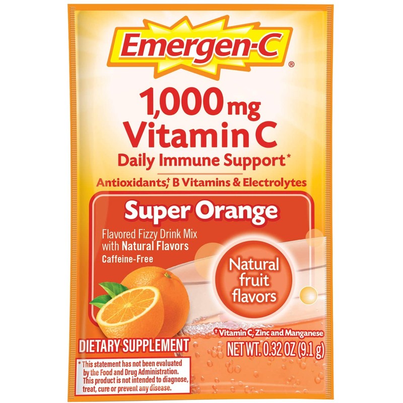 Emergen-C 1000mg Vitamin C Powder, with Antioxidants, B Vitamins and Electrolytes, Vitamin C Supplements for Immune Support, Caffeine Free Fizzy Drink Mix, Super Orange Flavor, 0.32 Ounce (Pack of 30)