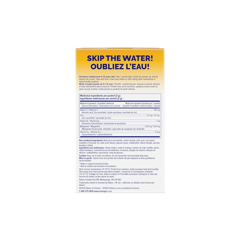 The no-water-needed, pour-in-your-mouth, immune support with a pop of flavour. New Emergen-C Junior Crystals provide a boost of vitamins and minerals to support kids' immune health, energy metabolism, and overall good health. Available in a tasty, all-natural strawberry flavour.