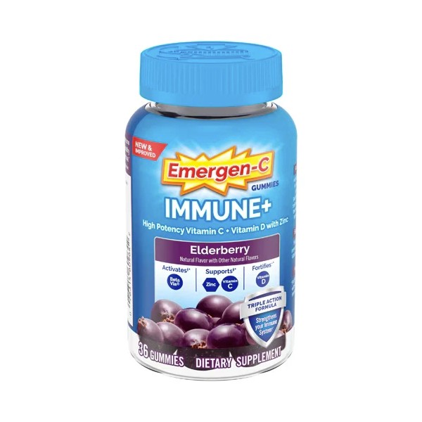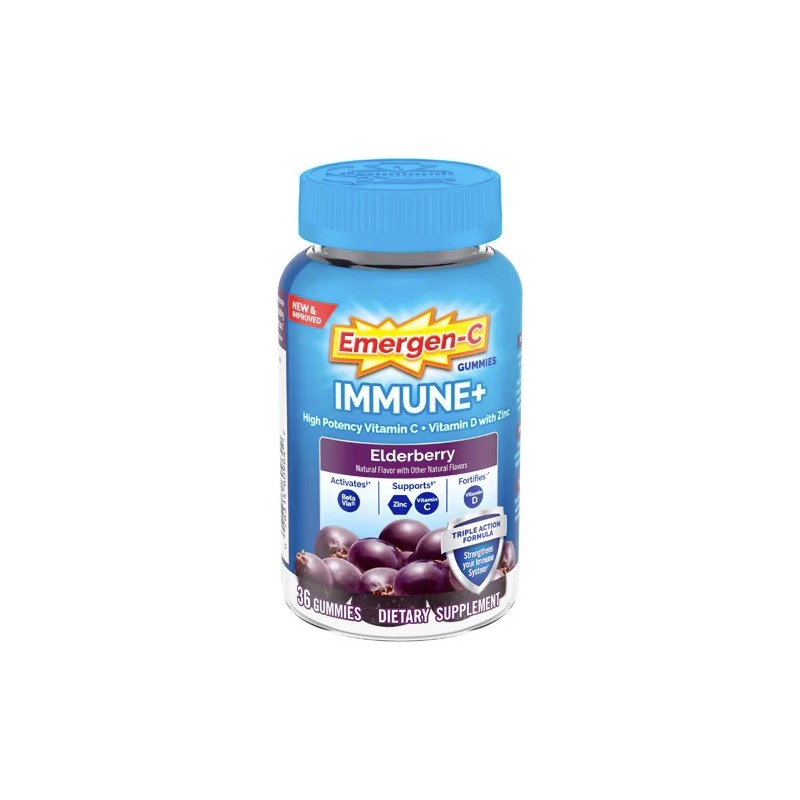 Emergen-C Immune+ Gummies Vitamin C Multivitamin, Elderberry, 36 Ct