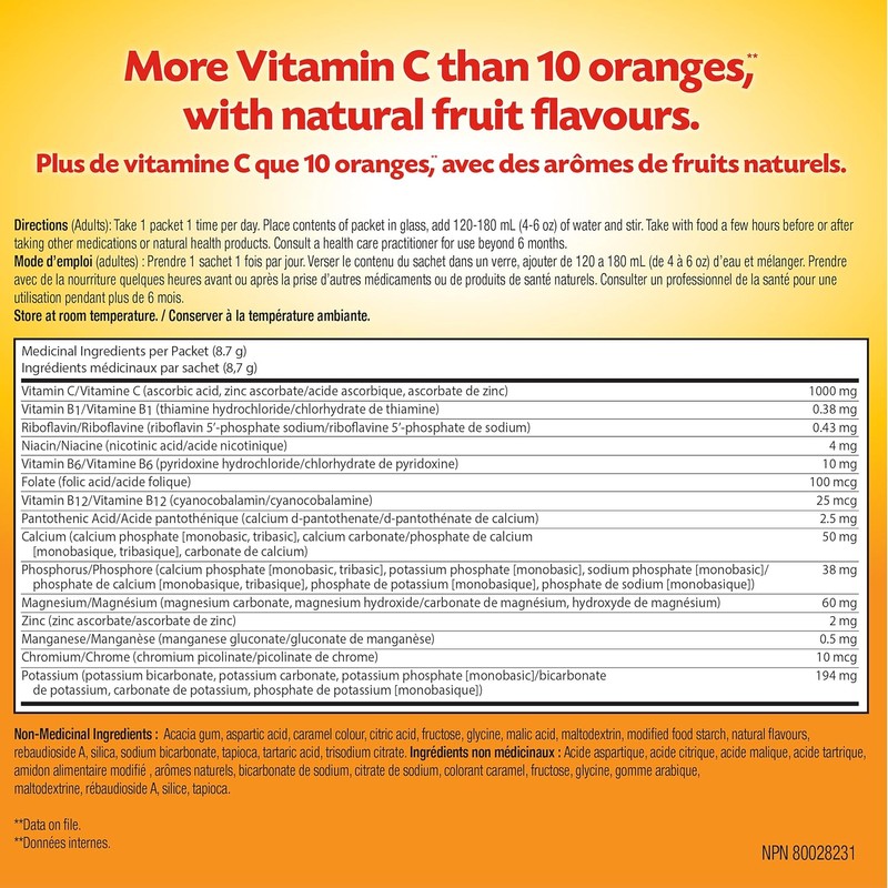 - ESSENTIAL VITAMINS, MINERALS & ELECTROLYTES: Each sachet provides 1,000 mg of vitamin C (more than 10 oranges), B vitamins, zinc, and more, to support healthy immune function and energy production.
