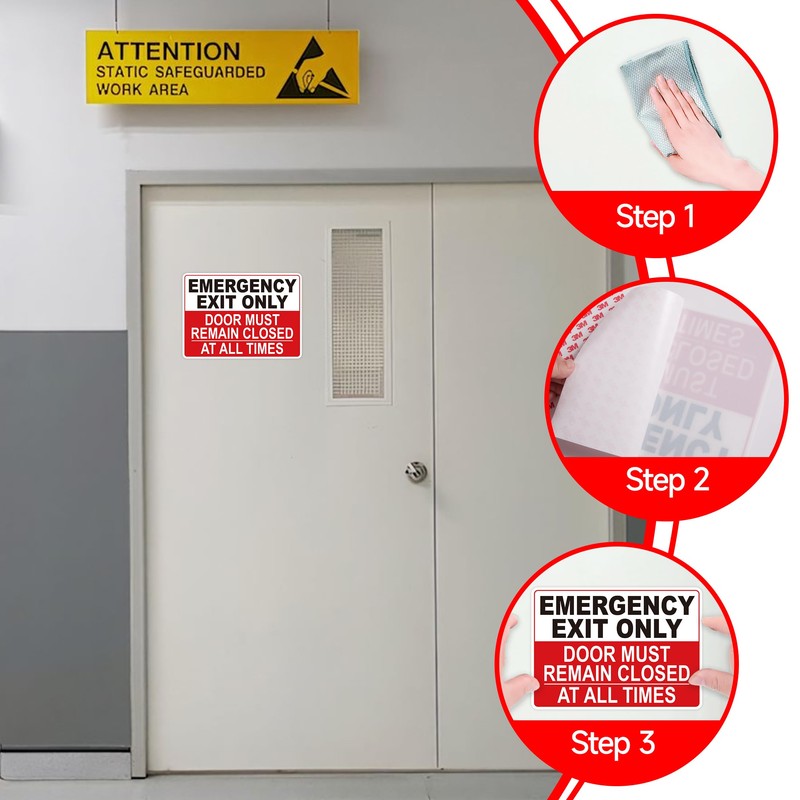 Emergency Exit Only Signs Sticker,Self Adhesive UV, Weather, Scratch, Water & Fade Resistant Door Must Remain Closed At All Times sign for Business, Schools, Offices, Storage Rooms, Hospitals