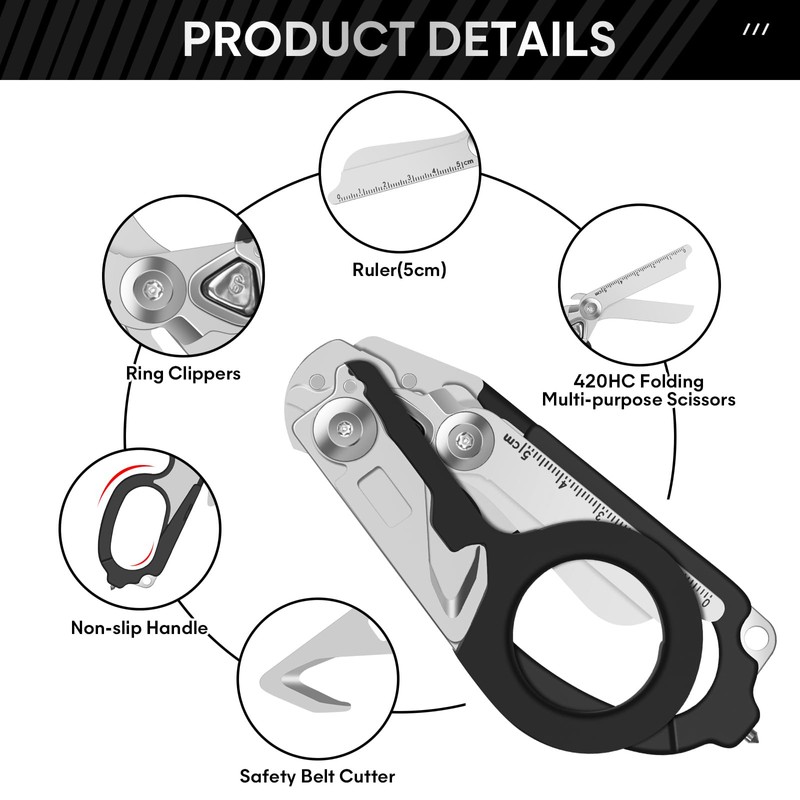 - MULTIFUNCTION:shears come with 6 essential tools, including folding emergency shears, ring knife, ruler, band cutter, carbide glass breaker and oxygen bottle wrench, trauma shears with scale for easy measurement, saving you time to measure things