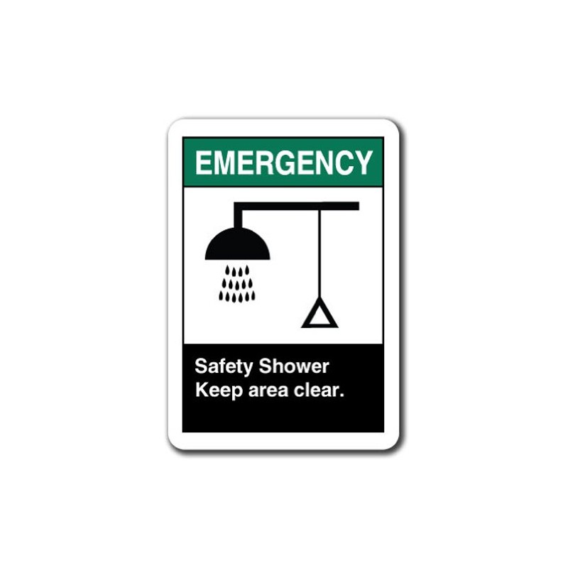 Emergency Sign - Safety Shower Keep Area Clear 7"X10" Plastic Safety Sign ANSI OSHA