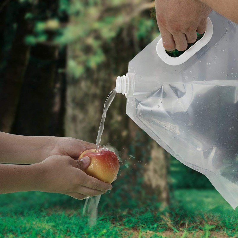 - Can be used repeatedly and lightly folded for a less bulky water bag. Easy to use by simply twist the faucet and pour water