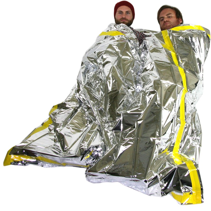 - SUPERIOR HEAT SOURCE: Conserving and sharing body heat are the key to surviving cold situations. If a friend and you are trying to survive, this sleeping bag will help. It is made of a reflective Mylar material, so it can retain high amounts of your shared radiant body HEAT! This will help you guys have a WARMER night’s sleep.