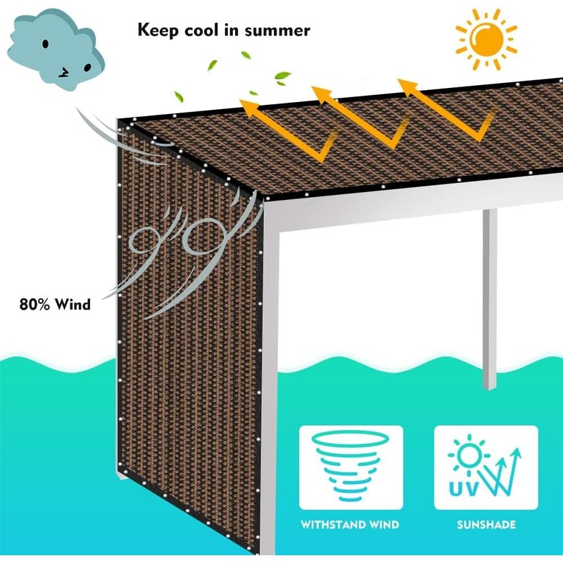 - [PREMIUM QUALITY] Made of 185 GSM UV-protected high-density polyethylene (100% HDPE) shade fabric, wind and sunlight resistant. All edges are covered with reinforced binding, and double grommets on each corner reduce tearing and retain strength
