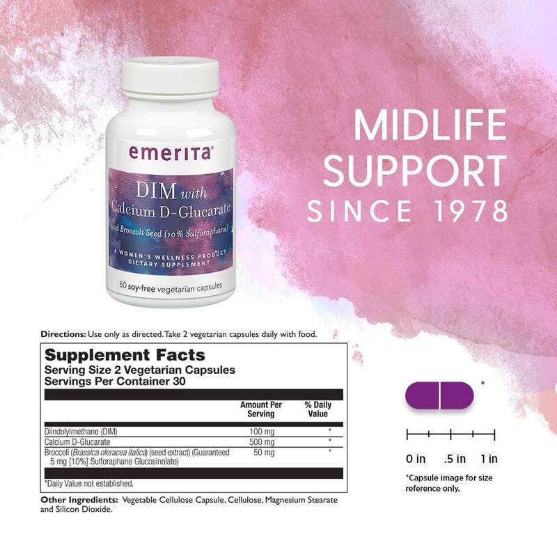 - 2 in 1: Generally sold separately, Emerita brings DIM & Calcium D-Glucarate together in 1 capsule