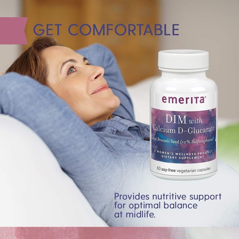 Emerita DIM Formula with Calcium D-Glucarate | Womens Supplement for Optimal Balance at Midlife | 60 VegCaps, 30 Serv.