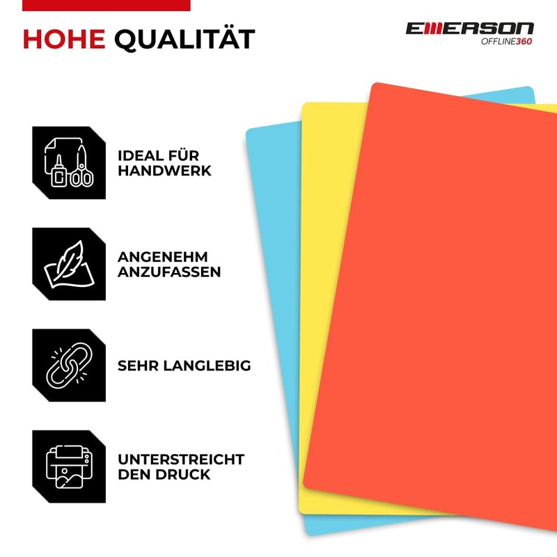 - Box contents: 100 sheets of high-quality paper for Emerson printers and photocopiers. Format: DIN A4, 21 x 29.7 cm. Colour : Intense mix of colours.