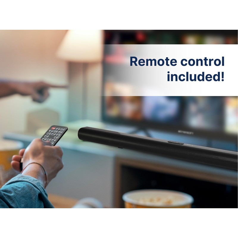 - INCLUDED REMOTE CONTROL FOR EASY OPERATION -- Control your soundbar from anywhere in the room with the included remote control. Adjust the volume, switch inputs, and manage playback without having to leave your seat, making it easy to tailor the sound to your preferences.