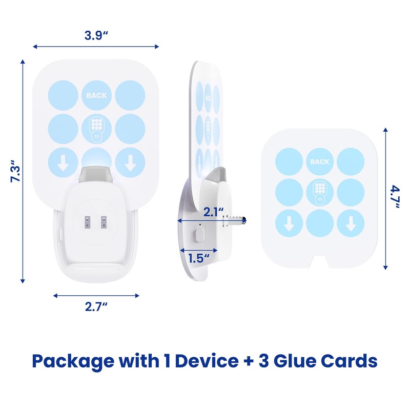 - Silent & Mess Free – No harsh smells, sprays, or buzzing. Just a quiet, solution for year-round bug control. Includes 3 glue cards to get you started. Unit dimensions: 3.5” W × 2.4” D × 2.3” H.
