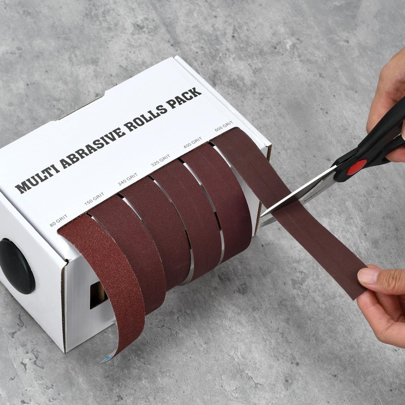 - 【Hassle-Free Pull-Out Dispenser Box】Say goodbye to clutter and disorganization. Our sandpaper rolls are neatly packed in a convenient dispenser box, with each roll clearly labeled with its grit size for instant identification. The innovative design allows you to easily pull, tear off the exact length you need, and dispense small amounts without waste. It’s a handy, space-saving solution that keeps your workstation tidy and your materials within reach.