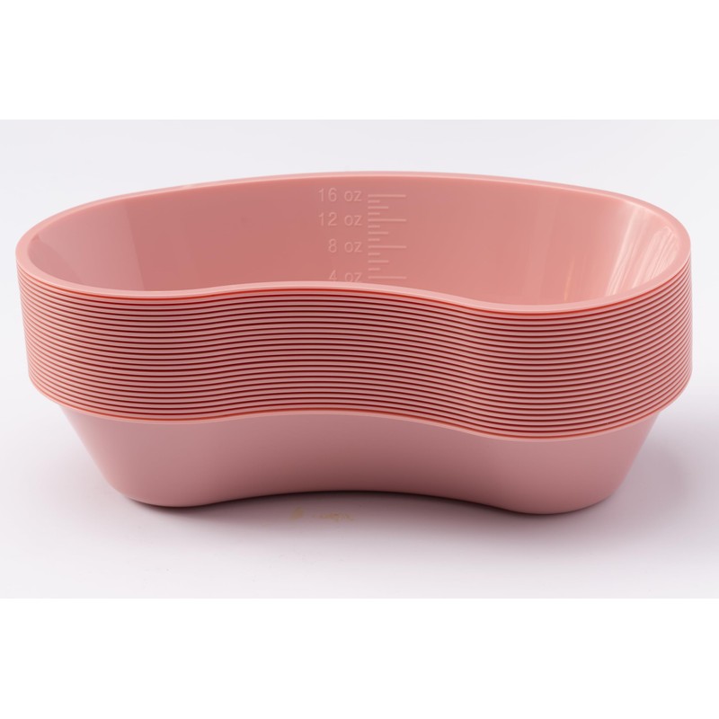 Emesis Basin Kidney Plastic Mauve 16oz - Reusable Plastic Kidney-Shaped, Mauve Color, 16oz Volume, 8-1/2" Primary Length, Disposable, 25/Box