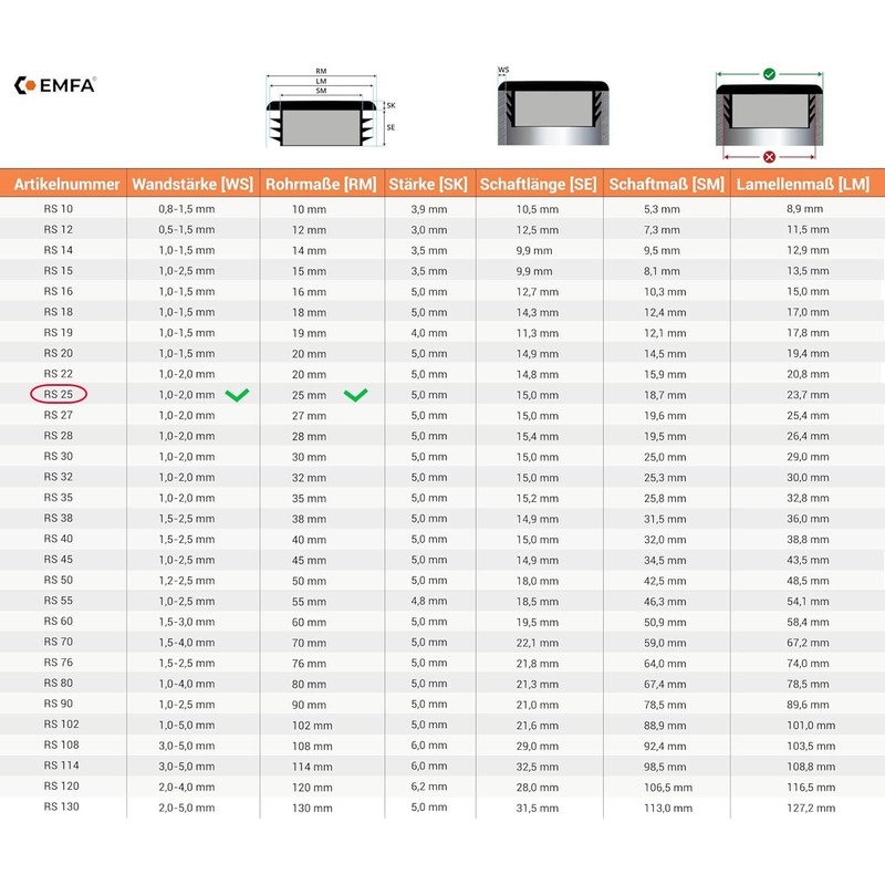 - How do I order the right lamellar plug? Choose the size of the lamellar plug that corresponds to the outer diameter of your pipe. Outer diameter and the wall thickness of the pipe must match.